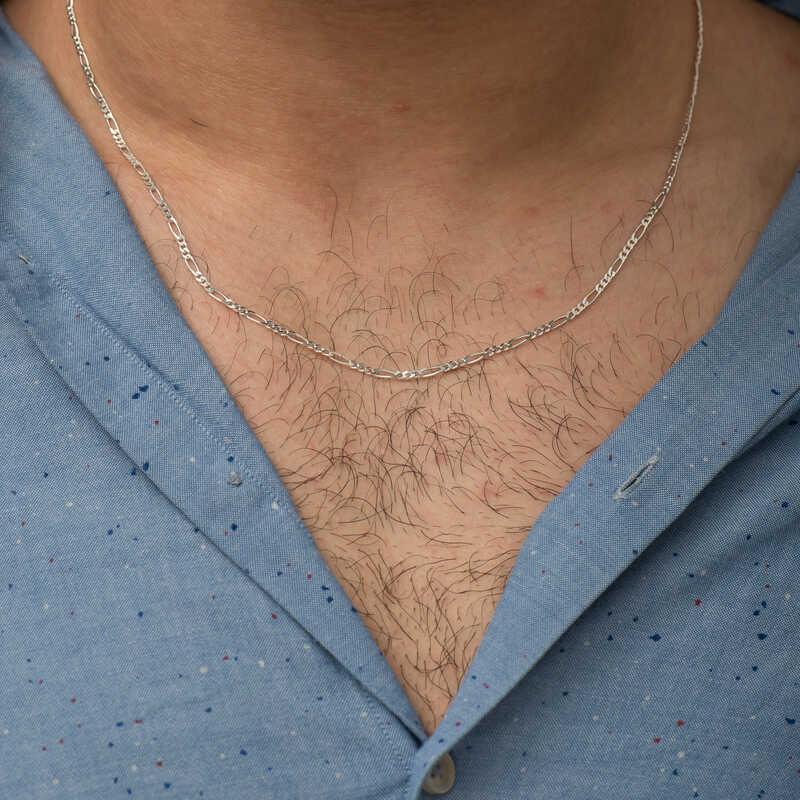 Gümüş zincir modelleri, gümüş takılar içerisinde hiç kuşkusuz en çok tercih edilen ürün gruplarından birisidir. Hem boyunları, hem de bilekleri süsler. İster kolye uçları ile birlikte, isterseniz de sade zincir şeklinde kullanabilirsiniz. Bu klasik figaro zincir modeli 925 ayar gümüşten imal edilmiştir. Makinelerde metre şeklinde üretilip daha sonra el emeği ile kolye haline getirilmektedir. Gümüş üzerine parlaklığı uzun süre koruması için ayrıca gümüş kaplama da yapılmıştır. Gümüş figaro zincir modellerini hem erkekler hem kadınlar rahatlıkla kullanabilir. Tüm gümüş zincir modellerinde olduğu gibi 925 ayar gümüş figaro zincir modeli de el emeği ile üretildiği için belirtilen ortalama ürün ağırlığında ± %10 oynama olabilir.Ortalama Ağırlıklar - 2.10 mm.