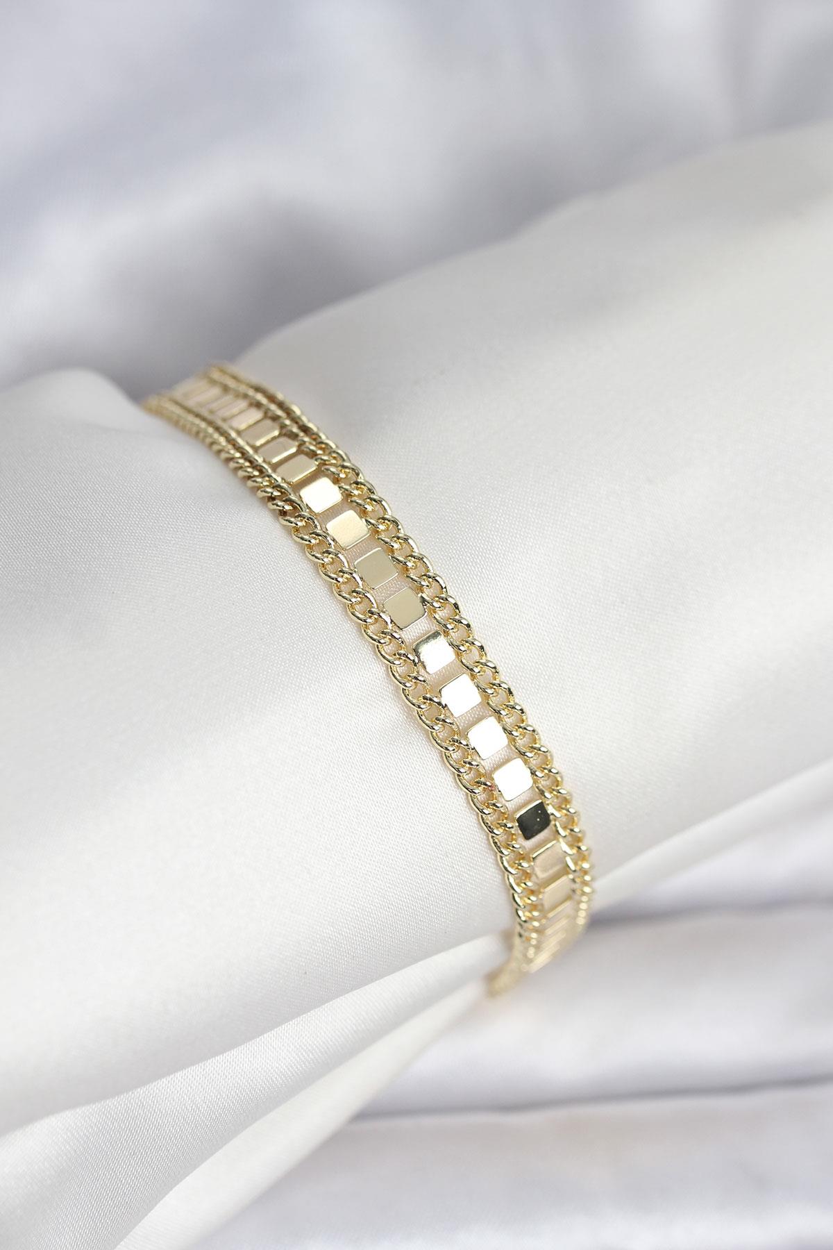 316L Çelik Gold Renk Pullu Zincir Model Kadın Bileklik