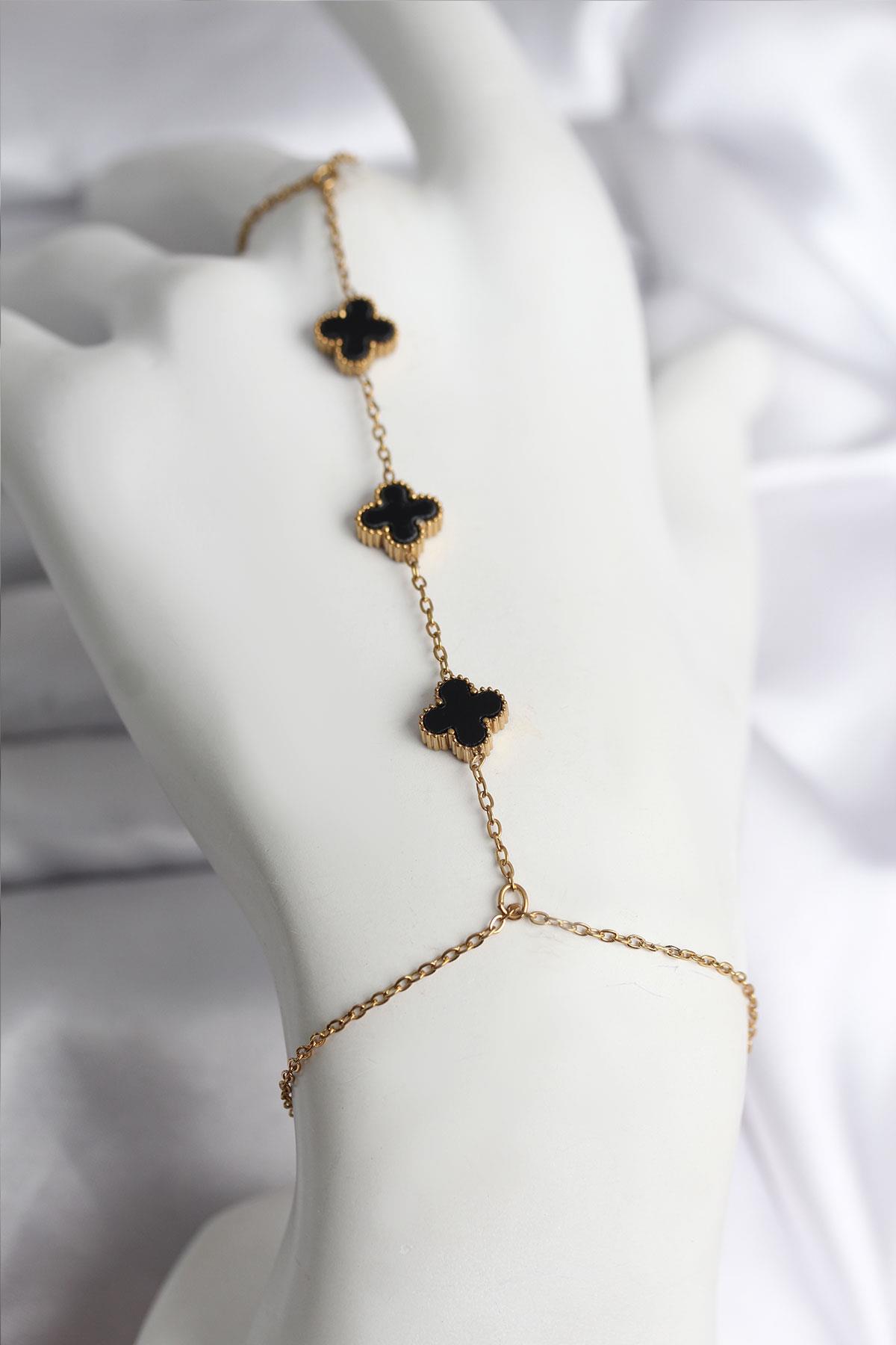 316L Çelik Gold Renk Siyah Yonca Model Kadın Şahmeran