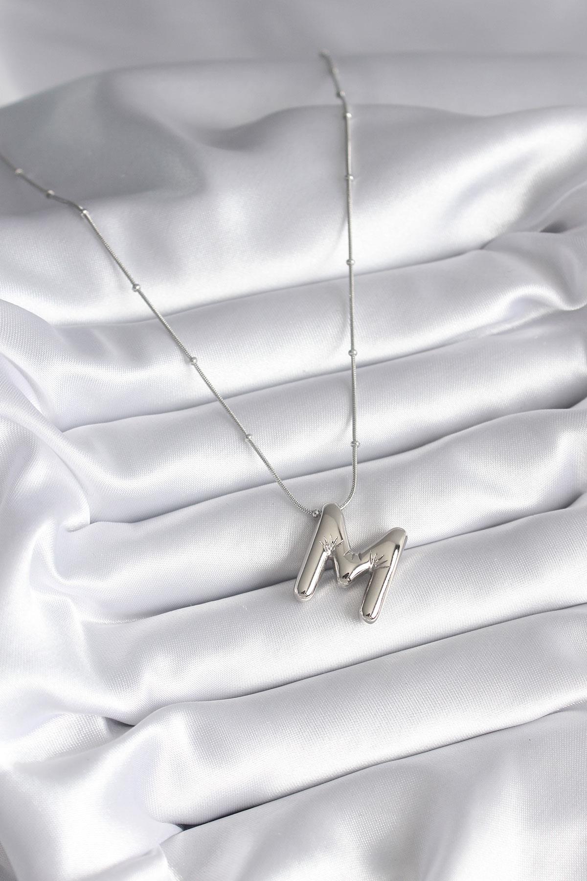 316L Çelik Gümüş Renk Bubble ''M'' Harf Model Kadın Kolye