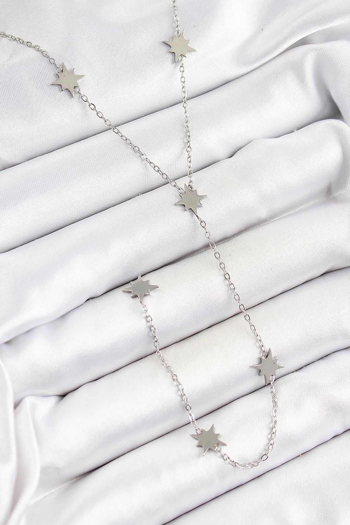 316L Çelik Kutup Yıldızı Figürlü Y Model Gümüş Renk Kadın Kolye