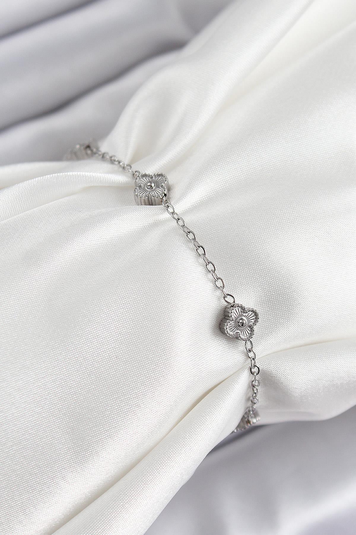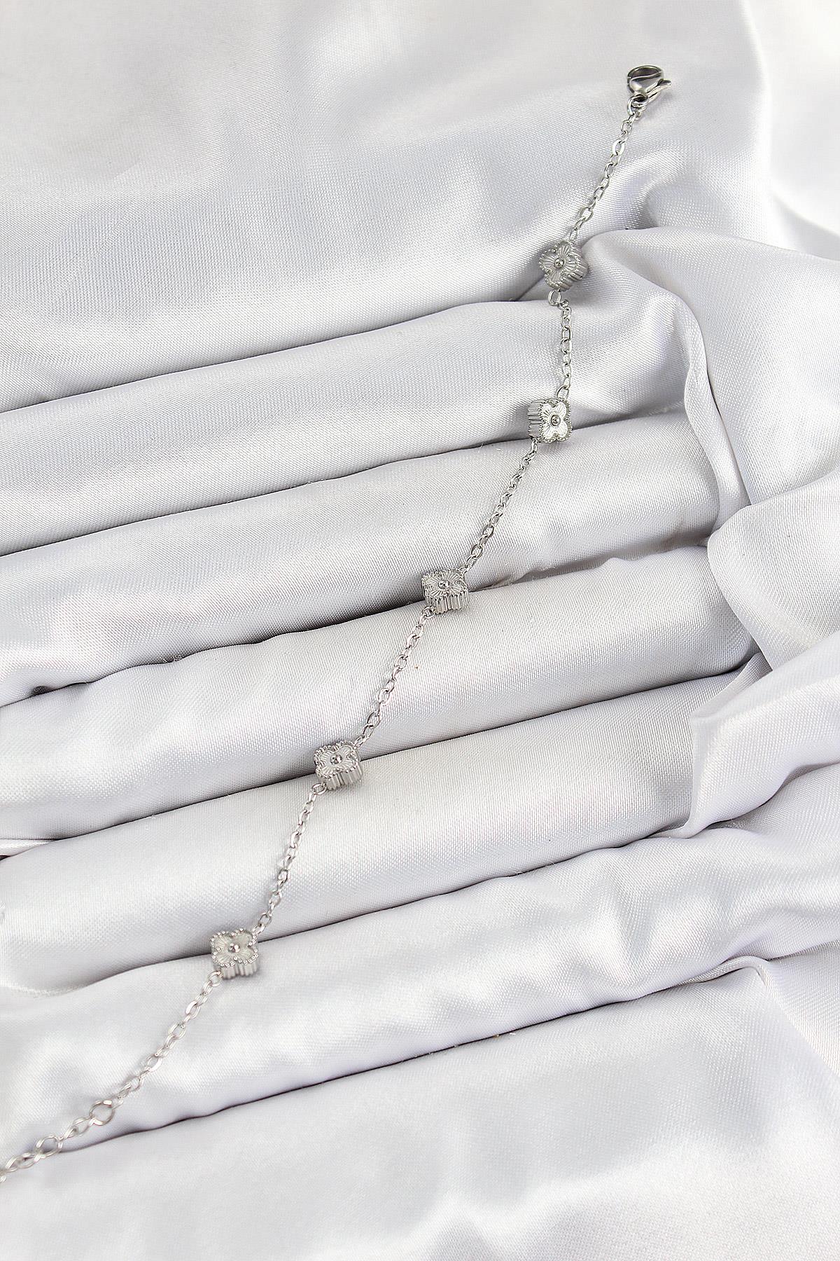 316L Çelik Yonca Model Gümüş Renk Kadın Bileklik