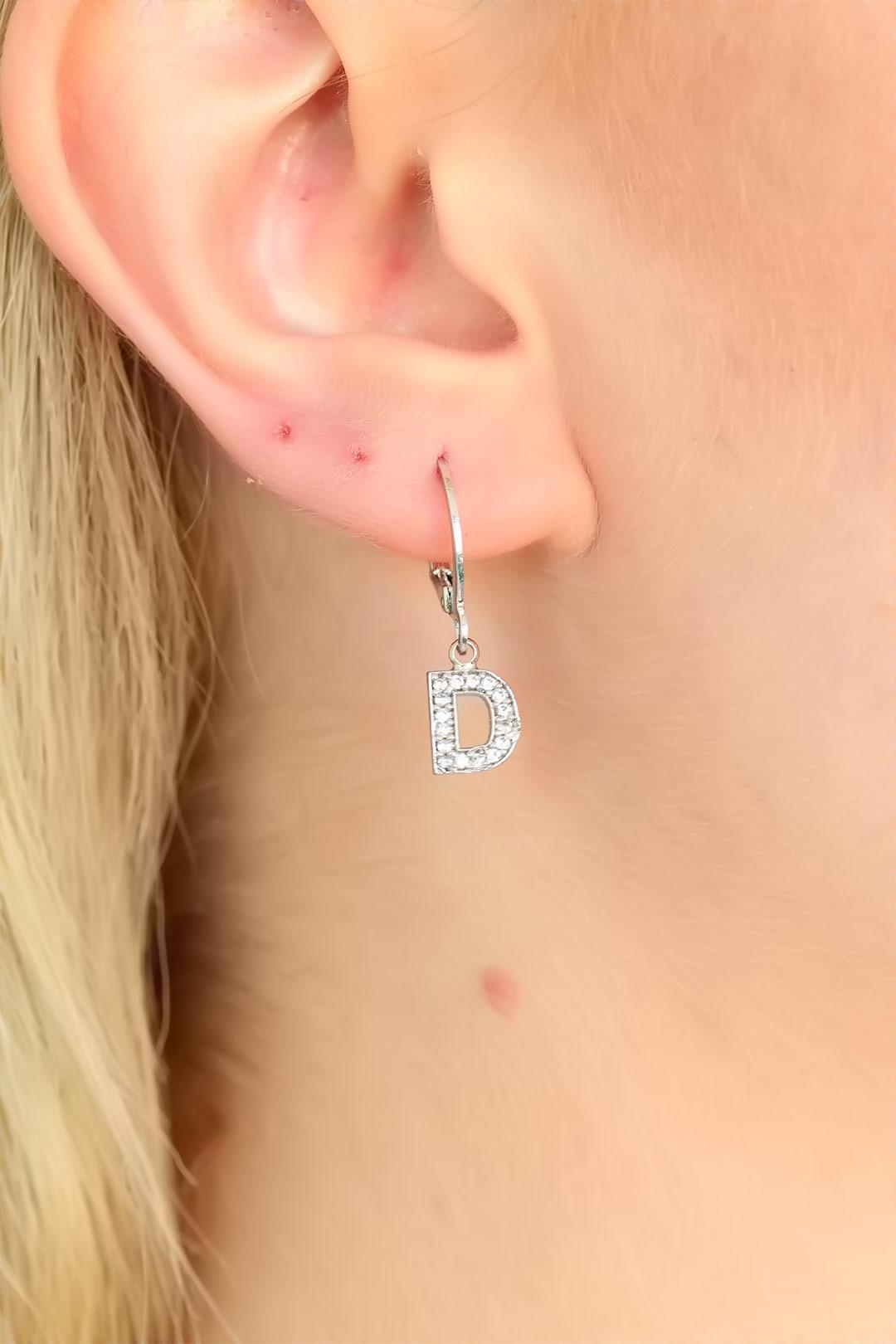 Silver Renk Zirkon Taşlı D Harf Bayan Küpe