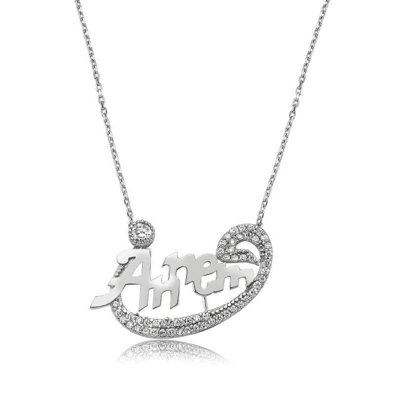 Anneler bizi dünyaya getiren en değerli varlıklarımızdır. Arap alfabesinin bir harfi olan vav ise anne karnındaki insan şeklini temsil eder. Bu iki anlamlı şekil bir araya gelerek bu harika tasarım bayan kolyeyi oluşturdu. 925 ayar gümüşten imal edilmiş bu vav desenli annem yazılı gümüş bayan kolye tasarımı üzerine rodyum kaplama yapılmıştır. Rodyum kaplama yapılan gümüş kolye modelleri parlaklığını uzun süre muhafaza eder, oksitlenmesi gecikir. Kolye üzerinde bulunan taşlar zirkondur. Kolye modeli kendinden zincirlidir. Zincir boyu ortalama 45 cm"dir. Zincir ile ağırlığı 3,50 gr’dır. Tüm bayan kolye modellerinde olduğu gibi gümüş vav annem yazılı kolye el emeği ile üretilmiştir. Gümüş ve değerli taşlar nedeniyle ürün ağırlığında ± %10 sapma olabilmektedir.