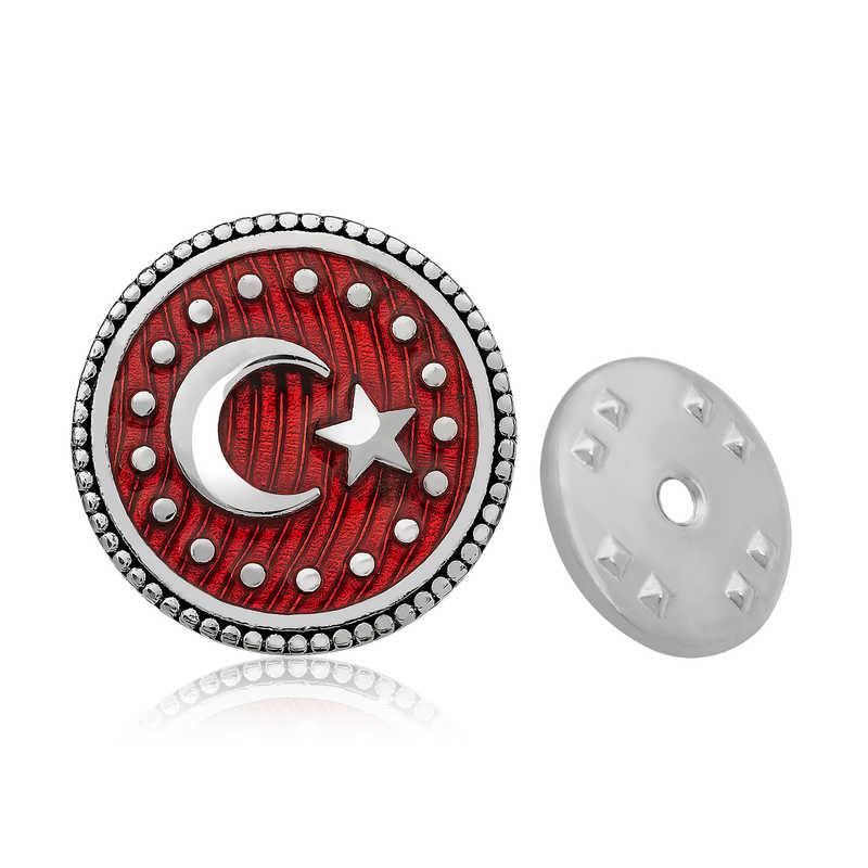 Türk bayrağının ilhamını kan gölüne yansıyan ay ve yıldızdan aldığını biliyoruz. Bayrağın taşıdığı kutsal anlamı taşımak ve sevdiklerinizle paylaşmak için kaçırılmayacak bir fırsat sunuyoruz. Bu şık rozet; doğum günü hediyesi, babalar günü veya özel günlerde tercih edilebilecek mükemmel bir seçenektir. Bu rozet modeli 925 ayar gümüşten imal edilmiştir. Gümüş üzerine rodyum kaplama yapılmıştır. Rodyum kaplama yapılan gümüş rozet modelleri parlaklığını uzun süre muhafaza eder, oksitlenmesi gecikir. Tüm gümüş rozetlerde olduğu gibi gümüş ay yıldız rozet modeli de tamamen el emeği ile üretilmiştir. Gümüş ve değerli taşlar nedeniyle belirtilen ortalama ürün ağırlığında ± %10 sapma olabilmektedir.