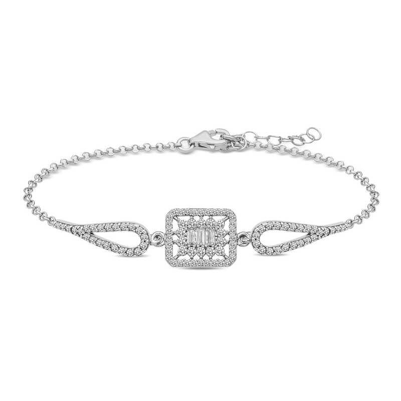 Modaya uyumlu şekilde tasarlanan gümüş baget bileklik modellerini hem gündelik yaşantınızda hem özel gün ve gecelerinizde şık bir şekilde kullanabilirsiniz. Yenilikçi her yaştan kadının beğenisine hitap eden ürünlerle kombinlerinizi tamamlayabilirsiniz. Her biri farklı bir stile hitap edebilen tasarımlarla sizler de spor, klasik ve alternatif giyim tarzlarınıza uygun modellerimizi tercih edebilirsiniz. Bu şık bileklik; doğum günü hediyesi, sevgililer günü hediyesi veya özel günlerde tercih edilebilecek mükemmel bir seçenektir. Gümüş baget taşlı bayan bileklik 925 ayar gümüşten imal edilmiştir. Bu bileklik üzerinde rodyum kaplama vardır. Rodyum kaplama yapılan ürünler parlaklığını uzun süre muhafaza eder, oksitlenmesini geciktirir. Tüm gümüş bayan bileklik modellerinde olduğu gibi gümüş baget taşlı bayan bileklik modeli de el emeği ile üretilmiştir. Gümüş ve değerli taşlar nedeniyle belirtilen ortalama ürün ağırlığında ± %10 sapma olabilmektedir.