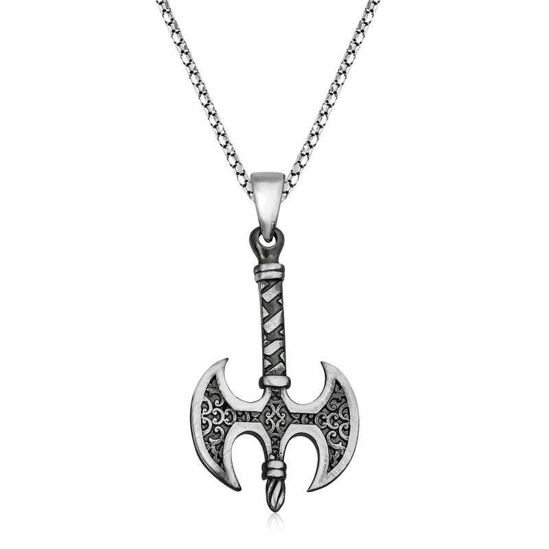 Siz de trendlerin gerisinde kalmaktan hoşlanmıyorsanız balta kolye sizin için doğru bir seçim olacaktır. Tarihimizden arda kalan en önemli savaş aletlerinden olan balta mistik havasıyla sizler için tasarlandı. Bu şık kolye; doğum günü hediyesi, babalar günü veya özel günlerde tercih edilebilecek mükemmel bir seçenektir. Kolye; 925 ayar gümüşten imal edilmiştir. Gümüş balta model kolye eskitme desen ve üzerine oksit kaplama yapılmıştır. Diğer kolyelerde olduğu gibi gümüş balta erkek kolye de el emeği ile üretilmiştir. Gümüş ve değerli taşlar nedeniyle belirtilen ortalama ürün ağırlığında ± %10 sapma olabilmektedir.
