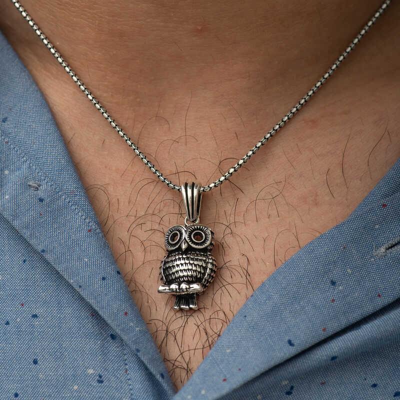 Baykuş, tarihte ve farklı kültürlerde zengin anlamlara sahip mitolojik bir hayvandır. Baykuş aksesuarlarının bu kadar sevilme nedeni güçlü sembolik anlamları olmasından kaynaklanıyor. Gece görme yeteneği sayesinde sezgisel güçlerinin kuvvetli olmasından dolayı simgesel olarak bilgeliği temsil etmektedir. Siz de bu kolyeyi günlük hayatta severek kullanabilir sevdiklerinize özel günlerde hediye edebilirsiniz. Bu şık tasarım kolye 925 ayar gümüşten imal edilmiştir. Gümüş üzerine oksit kaplama yapılmıştır. Tüm gümüş ürünlerde olduğu gibi gümüş baykuş kolye de tamamı el emeği ile üretilmiştir. Gümüş ve değerli taşlar nedeniyle belirtilen ortalama ürün ağırlığında ± %10 sapma olabilmektedir.