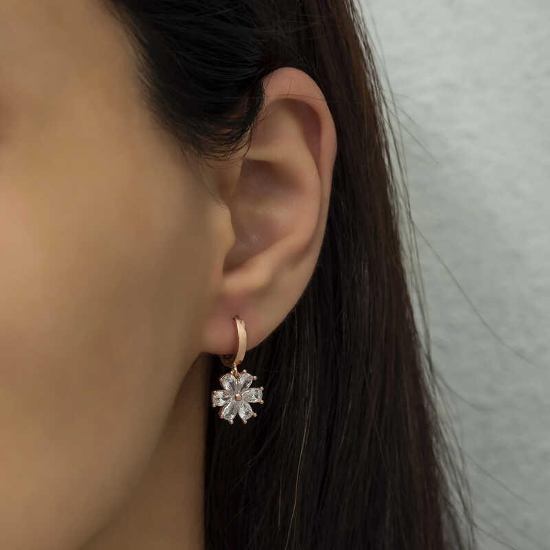 Gümüş Beyaz Çiçek Bayan Küpe