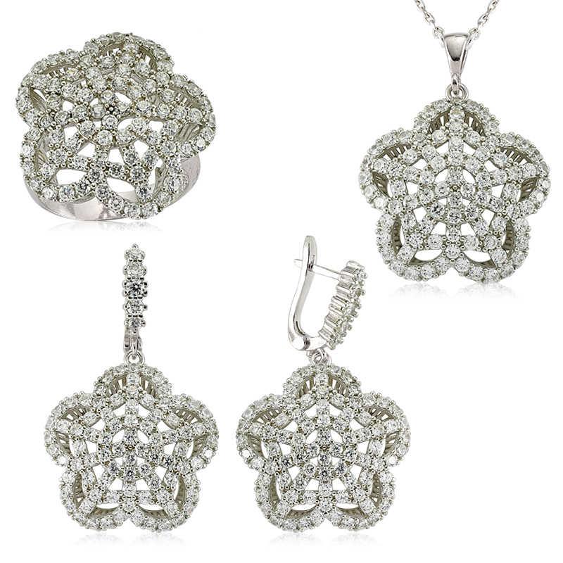 Sade ve şık tasarımıyla özel günlerinizde rahatlıkla kullanabileceginiz bir modeldir. Gümüş çiçek bayan set 925 ayar gümüşten imal edilmiştir. Gümüş üzerine rodyum kaplama yapılmıştır. Rodyum kaplama yapılan gümüş set modelleri parlaklığını uzun süre muhafaza eder ve oksitlenmesi gecikir. Set üzerinde bulunan taşlar zirkondur. Gümüş olan zincirin boyu ortalama 45 cm"dir. Bu gümüş çiçek bayan set el emeği ile üretilmiştir. Gümüş ve değerli taşlar nedeniyle ürün ağırlığında ± %10 sapma olabilmektedir.