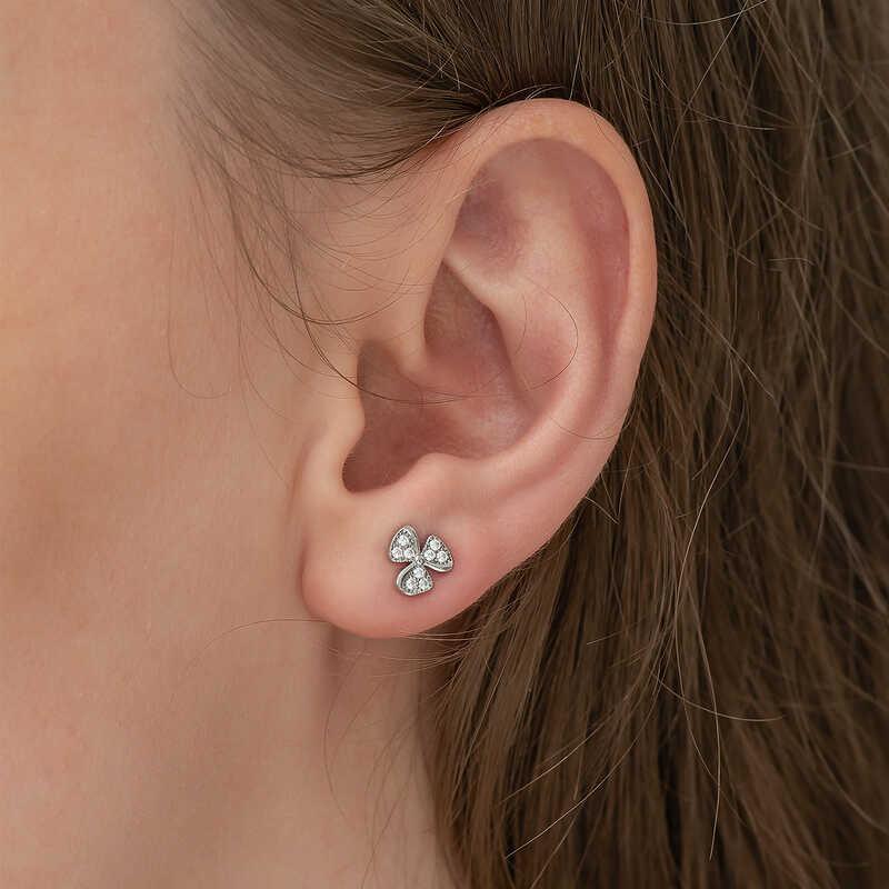 Gümüş Çiçek Çivili Bayan Küpe