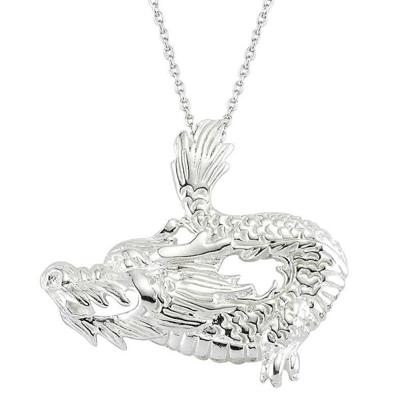 Bu anlamlı,şık ve yepyeni kolyeyi sizler için tasarladık. Bu mükemmel kolye; kendinize yada sevdiklerinize doğum gününde, babalar gününde yada özel günlerde hediye edebilirsiniz. Ejderha kolye modeli 925 ayar gümüşten imal edilmiştir. Gümüş kolye üzerine kararması geciksin diye gümüş kaplama yapılmıştır. Diğer gümüş kolyelerde olduğu gibi gümüş ejderha kolye modeli de tamamen el emeği ile üretilmiştir. Gümüş ve değerli taşlar nedeniyle belirtilen ortalama ürün ağırlığında ± %10 sapma olabilmektedir.