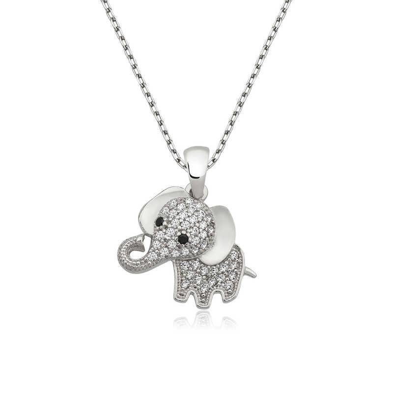 Fil; bilgelik, yetenek, iyi şans ve bereketin sembolüdür. Bu şık kolye; doğum günü hediyesi, sevgililer günü hediyesi veya annelere hediye olarak özel günlerde tercih edilebilecek mükemmel bir seçenektir. Bu anlamlı kolye 925 ayar gümüşten imal edilmiştir. Gümüş üzerine rodyum kaplama yapılmıştır. Rodyum kaplama yapılan gümüş kolyeler parlaklığını uzun süre muhafaza eder ve oksitlenmesi gecikir. Zincir boyu ortalama 45 cm"dir. Fil bayan kolye modeli üzerinde bulunan taşlar zirkondur. Tüm gümüş kolye modellerinde olduğu gibi bu gümüş fil bayan kolye modeli de el emeği ile üretilmiştir. Gümüş ve değerli taşlar nedeniyle belirtilen ortalama ürün ağırlığında ± %10 sapma olabilmektedir.