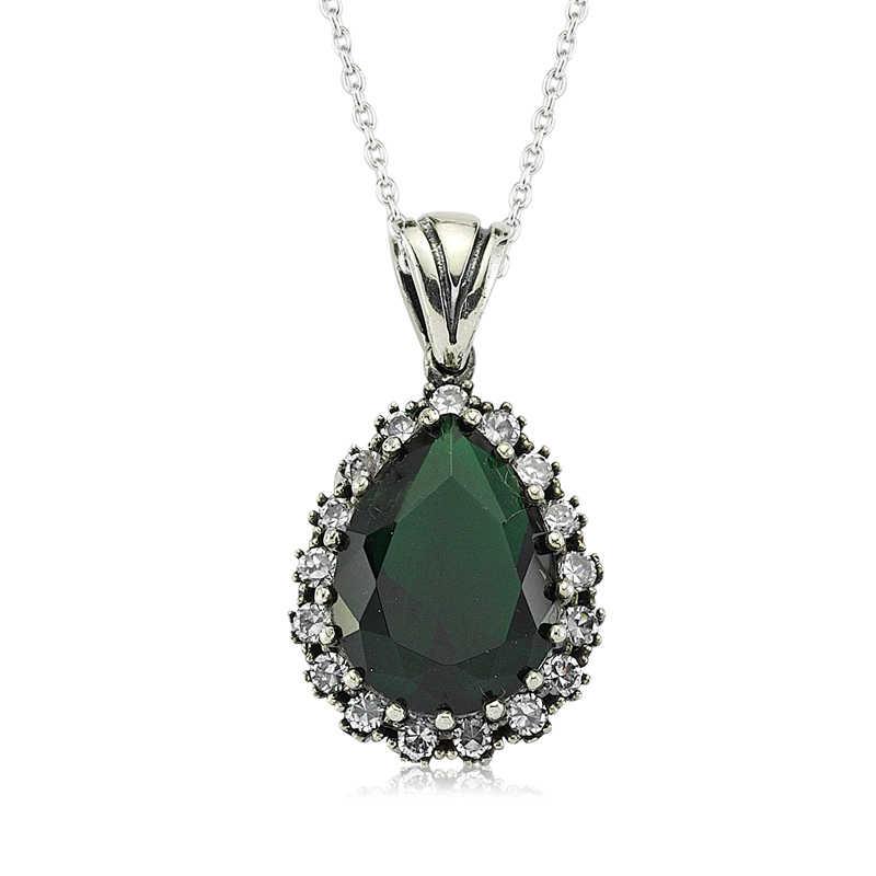 Şıklığı, zarafeti ve bütün ihtişamıyla Hürrem Sultan ve onu yansıtan birbirinden eşsiz takıları... Osmanlı motiflerini taşıyan, doğal taşlı, iri gümüş kolyeler tüm kadınların vazgeçilmezidir. Hiç bir dönemde zarafetinden ödün vermeyen Hürrem Sultan modellerini doğum günü hediyesi veya annelere hediye olarak özel günlerde tercih edilebilecek mükemmel bir seçenektir. Hürrem Sultan bayan kolye modeli 925 ayar gümüş kullanılarak imal edilmiştir. Yeşil ve beyaz zirkon taşlar kullanılarak ortaya çıkan Gümüş Hürrem Sultan bayan kolye modeli üzerine oksit kaplama yapılmıştır. Hürrem Sultan bayan kolyenin uzunluğu 45 cm’dir. Tüm gümüş otantik kolye modellerinde olduğu gibi gümüş Hürrem Sultan bayan kolye modeli de el emeği ile üretilmiştir. Gümüş ve değerli taşlar nedeniyle belirtilen ortalama ürün ağırlığında ± %10 sapma olabilmektedir.