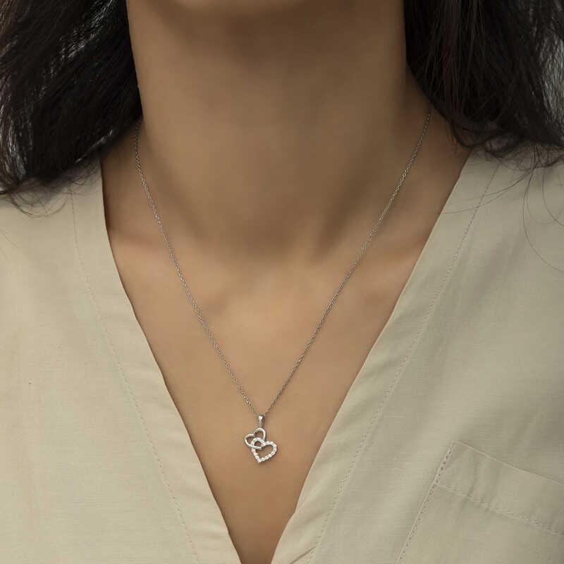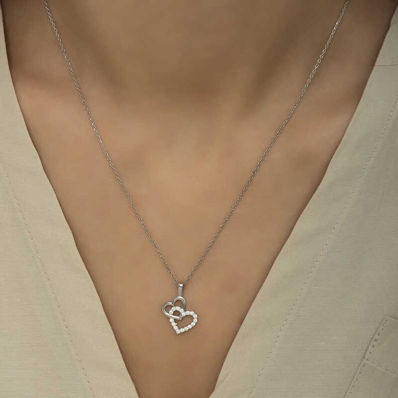 Kalp deseninin bir kısmı taşlı olan bu harika tasarım kalp kolye modeli 925 ayar gümüşten imal edilmiştir. Kalp tasarımlı kolyeler aşkı çağrıştırır. Bu yüzden gümüş kalp kolye güzel bir hediye seçeneği de olabilir. Bu kolye üzerinde zirkon taşlar kullanılmıştır. Gümüşün üzerine oksitlenmesinin gecikmesi ve parlaklığını uzun süre muhafaza etmesi için rodyum kaplama yapılmıştır. Tamamen gümüş olan zincir uzunluğu ortalama 45 cm’dir. Bu bayan kalp kolye modeli diğer gümüş bayan kalp kolye modellerinde olduğu gibi el emeği ile üretilmiştir. Gümüş ve değerli taşlar nedeniyle belirtilen ortalama ürün ağırlığında ± %10 sapma olabilmektedir.