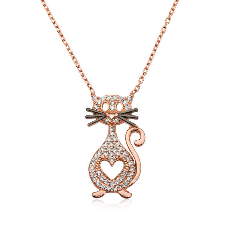 Evlerimizin sevimli neşe kaynağı kediler, temiz olmalarının yanı sıra masumiyetin simgesidir. Asil ve mantıklı bir kişiliğe, mükemmel sezgilere ve akılcı bir duyarlılığa sahiptirler. Özel günlerin en tercih edilen hediye seçeneklerinden olan gümüş takılar, sevdiklerini mutlu etmek ve onlara her an yanlarında taşıyabilecekleri bir hediye vermek isteyenler için tasarlandı. Masumiyetin simgesi olan kedi figürlü gümüş kolyeyi kız kardeşinize, sevgilinize ya da arkadaşlarınıza armağan edebilirsiniz. Kalpli kedi kolye modeli 925 ayar gümüşten imal edilmiştir. Gümüş üzerine rose altın kaplama yapılmıştır. Rose altın kaplama yapılan gümüş bayan kolye modelleri parlaklığını uzun süre muhafaza eder ve oksitlenmesi gecikir. Gümüş olan zincir boyu ortalama 45 cm"dir. Gümüş kalpli kedi kolye diğer tüm gümüş bayan kolye modellerinde olduğu gibi el emeği ile üretilmiştir. Gümüş ve değerli taşlar nedeniyle belirtilen ortalama ürün ağırlığında ± %10 sapma olabilmektedir.