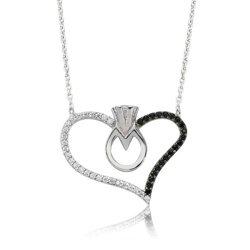 Gümüş Kalpli Tek Taş Bayan Kolye