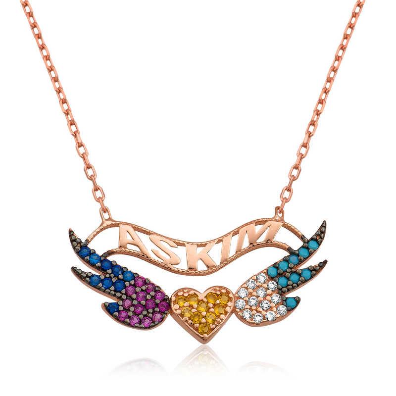Gümüş Kanatlı Kalp Bayan Kolye