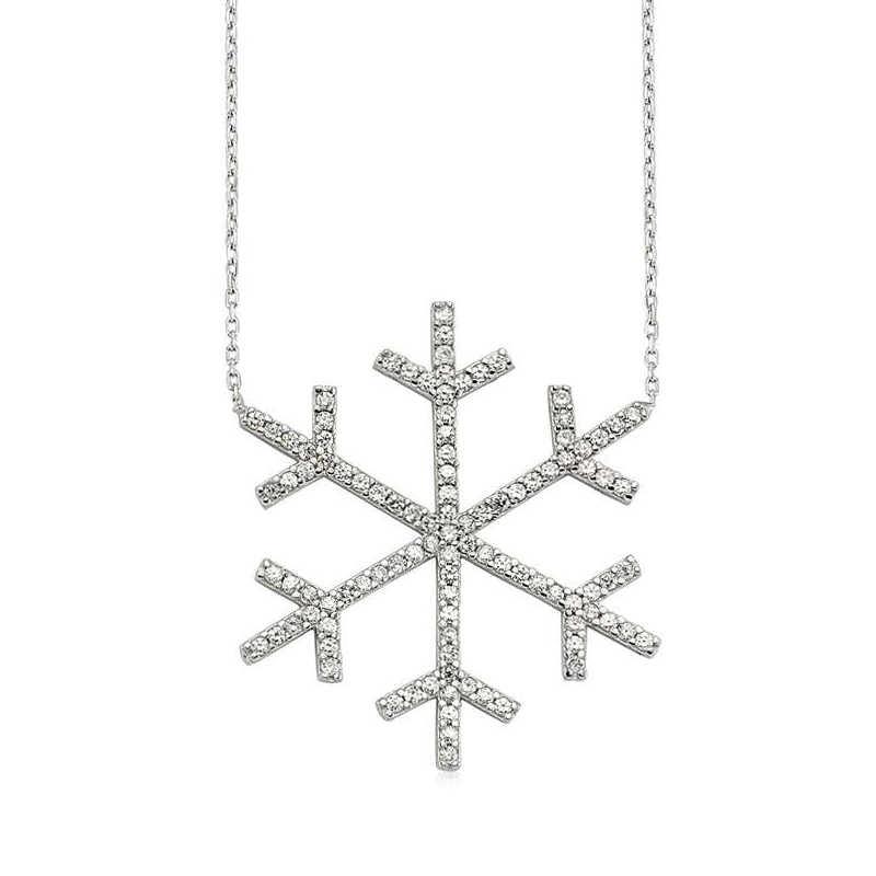 Kadınların vazgeçilmez aksesuarlarından biri olan gümüş kolye modellerinde bir klasik haline gelen kar tanesi modeli yepyeni bir tasarım ile yeniden yorumlandı. Bu şık tasarıma sahip kar tanesi kolye 925 ayar gümüşten imal edilmiştir. Gümüş üzerine rodyum kaplama yapılmıştır. Rodyum kaplama yapılan bayan gümüş kolye modelleri parlaklığını uzun süre muhafaza eder, oksitlenmesi gecikir. Kolye üzerinde bulunan taşlar zirkondur. Gümüş olan zincir boyu ortalama 45 cm"dir. Tüm gümüş takı modellerimizde olduğu gibi kar tanesi bayan kolye de el emeği ile üretilmiştir. Gümüş ve değerli taşlar nedeniyle belirtilen ürün ağırlığında ± %10 sapma olabilmektedir.