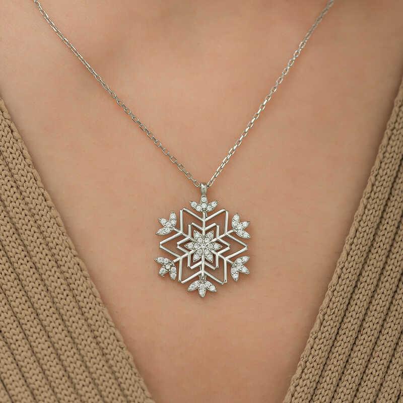 Kadınların ışıltısı, berraklığı kar tanesine benzetilip özel olarak tasarlanmıştır. Kar tanelerinin her birinin bayanlar gibi eşsiz ve ayrı kıymette olması onları özel kılan bir diğer özelliktir. Asilliği her dönemde dikkat çekmeyi başarmıştır. Bunun yanında insanların tıpkı kar taneleri gibi birbirlerine zarar vermeden de mutlu bir şekilde yaşayabileceklerini sembolize etmektedir. Bu şık kolye; doğum günü hediyesi, sevgililer günü hediyesi veya annelere hediye olarak özel günlerde tercih edilebilecek mükemmel bir seçenektir. Kolye, 925 ayar gümüşten imal edilmiştir. Gümüş üzerine rodyum kaplama yapılmıştır. Rodyum kaplama yapılan ürünler parlaklığını uzun süre muhafaza eder ve oksitlenmesi gecikir. Tüm gümüş bayan kolyelerde olduğu gibi bu gümüş kar tanesi bayan kolye de tamamı el emeği ile üretilmiştir. Gümüş ve değerli taşlar nedeniyle belirtilen ortalama ürün ağırlığında ± %10 sapma olabilmektedir.