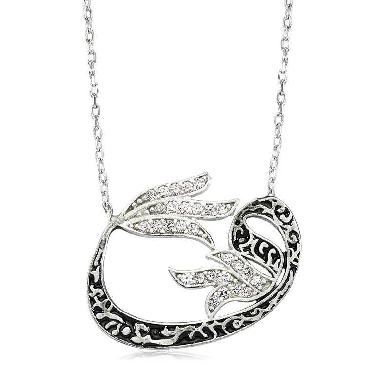 Gümüş Lale Vav Bayan Kolye
