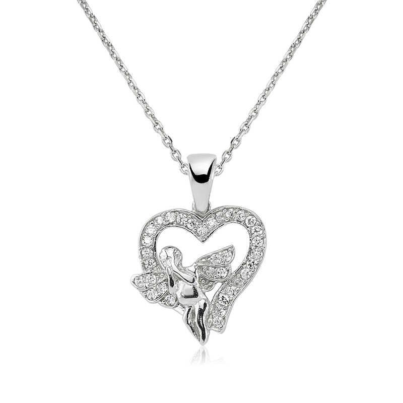Gümüş Melek Kalp Bayan Kolye