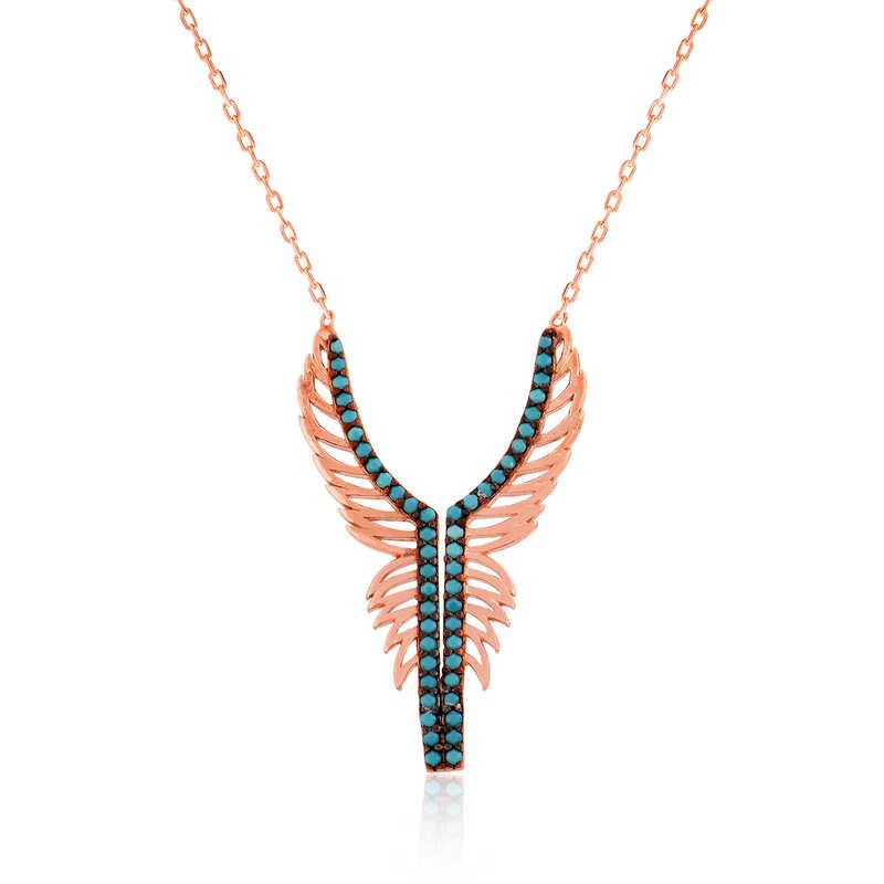 Melekler saflığın ve temizliğin simgeleridir. Bu nedenle melek kolye hediye edilen kişiye melek kadar saf ve temiz olduğu mesajı verilmektedir... Bu özel melek kanadı tasarımı 925 ayar gümüşten imal edilmiştir... Tasarım melek kanadı bayan kolye üzerinde bulunan taşlar zirkondur. Bu bayan gümüş kolye üzerine rose kaplama yapılmıştır. Rose kaplama yapılan tüm kolyeler parlaklığını uzun süre muhafaza eder, gümüşe pembe rengi verir. Tüm gümüş kolyelerde olduğu gibi bu gümüş melek kanadı bayan kolye de el emeği ile üretilmiştir. Gümüş ve değerli taşlar nedeniyle ürün ağırlığında ± %10 sapma olabilmektedir.