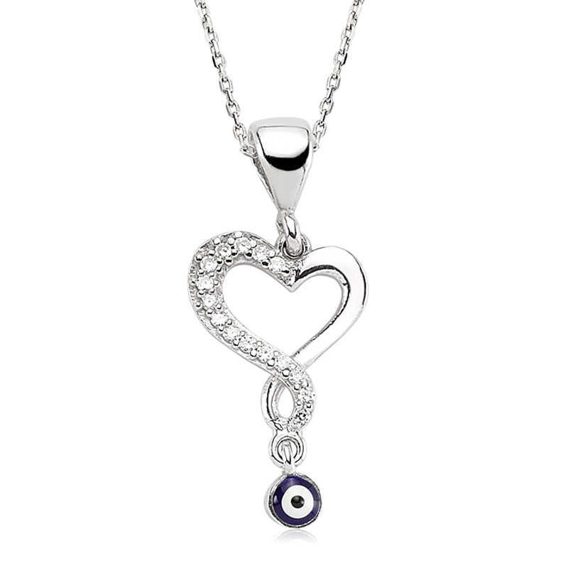 Gümüş Nazarlı Bayan Kalp Kolye