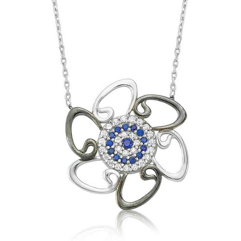 Vav, insanoğlunun en aciz halini yani anne karnındaki duruşunu temsil etmektedir. Aynı zamanda bir kulun yaradan karşısında edeple eğilişini sembolize eder. Zirkon taşlarla süslenmiş nazar etrafında üç tane beyaz üç tane de siyah olmak üzere altı vav harfi ile çevrilmiş bu harika tasarım kolye 925 ayar gümüş ile imal edilmiştir. Gümüş üzerine rodyum kaplama yapılmıştır. Rodyum kaplama yapılan tüm bayan kolye modelleri parlaklığını uzun süre korur. Kolyenin zinciri de 925 ayar gümüşten imal edilmiştir. Kolye uzunluğu ortalama 45 cm’dir. Tüm bayan kolye modellerimizde olduğu gibi nazar motifli vav bayan kolye modelimiz de el emeği ile üretilmiştir. Gümüş ve değerli taşlar nedeniyle ürün ağırlığında ± %10 sapma olabilmektedir.
