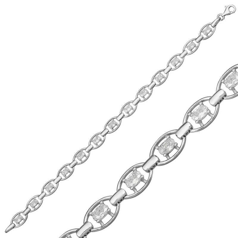 Gümüş Oval Su Yolu Bayan Bileklik