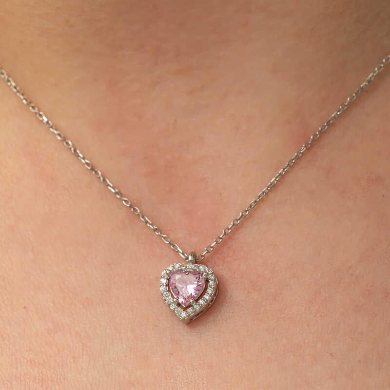 Gümüş Pembe Taşlı Kalp Kadın Kolye