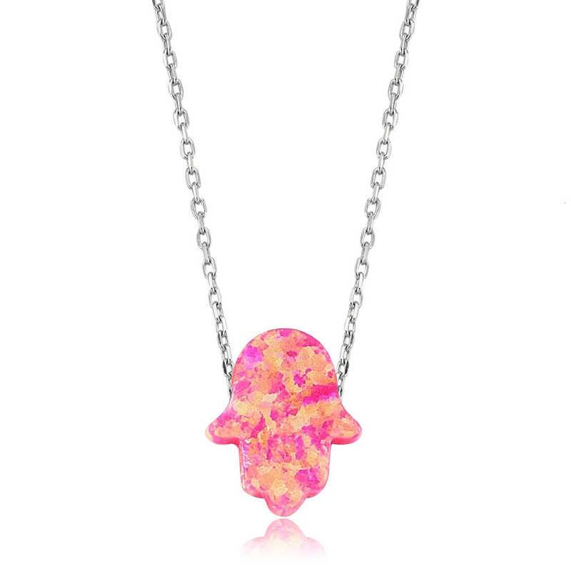 Gümüş Pembe Opal Fatma Eli Bayan Kolye