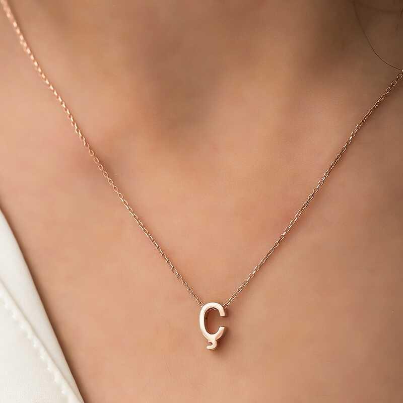 Gümüş Rose 3 Boyutlu Ç Harf Bayan Kolye