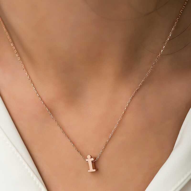 Gümüş Rose 3 Boyutlu İ Harf Bayan Kolye