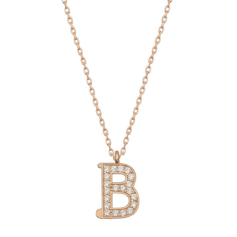 Gümüş Rose B Harfi Kadın Kolye