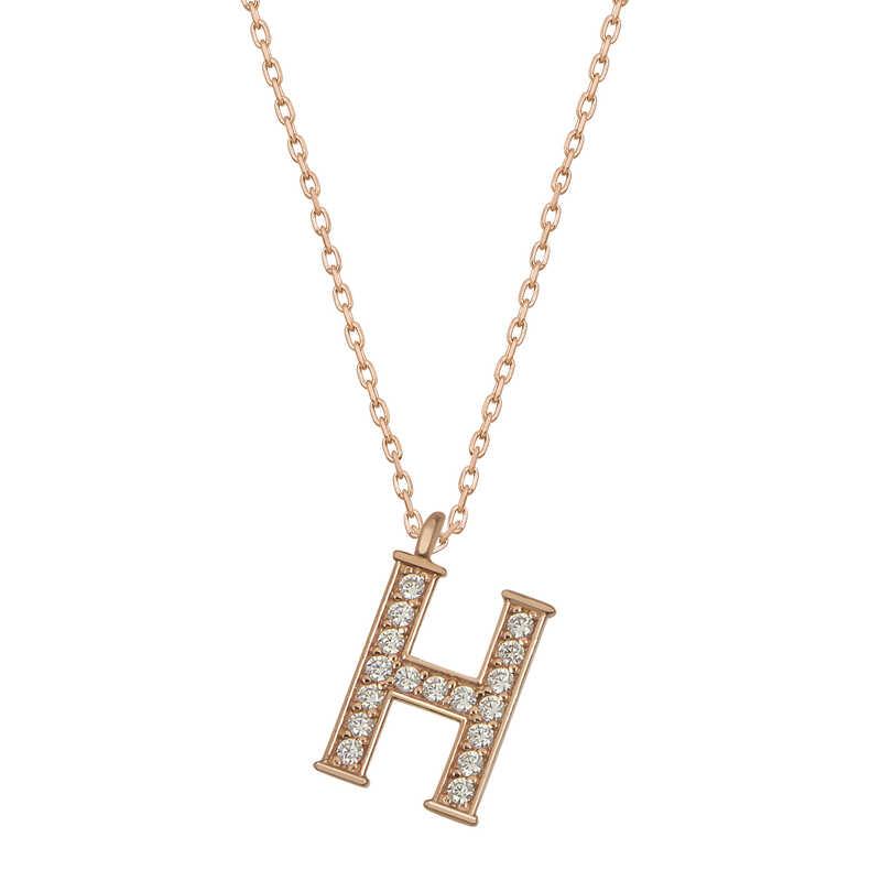 Gümüş Rose H Harfi Kadın Kolye