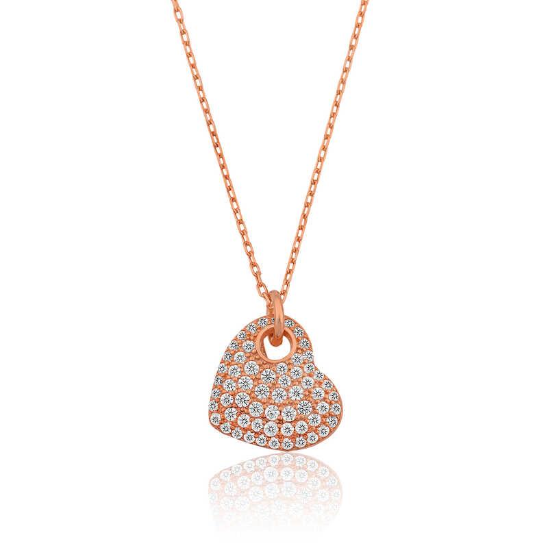 Kalp simgesi daima koşulsuz sevginin ve aşkın sembolü olmuştur. Dini öğretilerde ise kalbin gücü sınırsızdır. Çünkü kalp Yaradanın evi, bizim ise evrene açılan gerçeklik kapımızdır. Bu şık gümüş kalp kolye; doğum günü hediyesi, sevgililer günü hediyesi veya annelere hediye olarak özel günlerde tercih edilebilecek mükemmel bir seçenektir. Gümüş kalp bayan kolye 925 ayar gümüşten imal edilmiştir. Bu kolye üzerinde rose kaplama yapılmıştır. Rose kaplama yapılan gümüş bayan kolye modelleri parlaklığını uzun süre muhafaza eder. Üzerinde bulunan taşlar zirkondur. Tüm gümüş bayan kolye modellerimizde olduğu gibi gümüş kalp bayan kolye modeli de el emeği ile üretilmiştir. Gümüş ve değerli taşlar nedeniyle belirtilen ortalama ürün ağırlığında ± %10 sapma olabilmektedir.