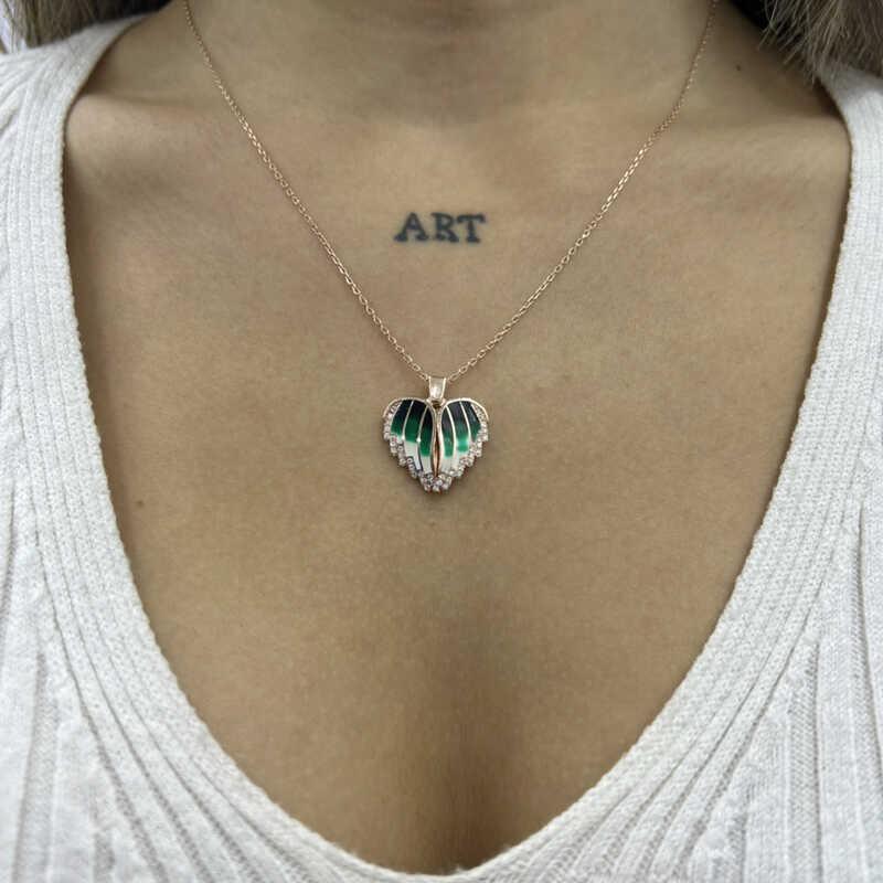 Kalp deseniyle aşkı ifade eden bu kolye ile sevginiz, sevdiğiniz kadının teninde hayat bulsun. Genç sevgililerin ve kendini genç hissedenlerin özel günlerde seçebileceği bu kalpli bayan kolye ile sevdiğinizin boynunu aşkla süsleyin. Sizin olduğu kadar sevdiklerinizin de keyifle takacağı kalpli kolye sevdiğinize en güzel hediyelerden biri olacaktır. Kalpli isimli bayan kolye 925 ayar gümüşten imal edilmiştir. Gümüş üzerine rose kaplama yapılmıştır. Rose kaplama yapılan gümüş bayan kalpli isimli kolyeler parlaklığını uzun süre muhafaza eder ve oksitlenmesi gecikir. Kolye üzerinde bulunan taşlar zirkondur. Gümüş olan zincir boyu ortalama 45 cm"dir. Tüm bayan kolyelerde olduğu gibi gümüş kalpli isimli bayan kolye de el emeği ile üretilmiştir. Gümüş ve değerli taşlar nedeniyle belirtilen ortalama ürün ağırlığında ± %10 sapma olabilmektedir.