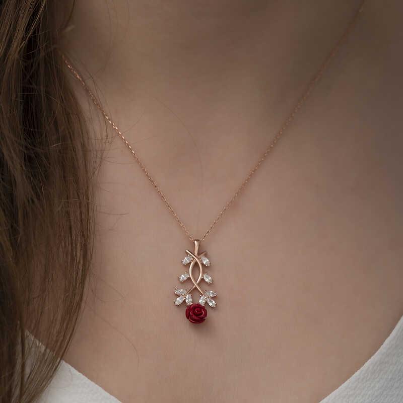 Havaların ısınmasıyla birlikte canlanan doğa, ilkbaharın geldiğini müjdeler. Yeşile bürünen ağaçlar, rengarenk çiçekler açar ve eşsiz kokuları ile bizi karşılar. Doğadan ilham alınarak tasarlanan bu kolye yeniden doğuşu ilkbaharı sembolize etmektedir. Bu şık kolye; doğum günü hediyesi, sevgililer günü veya özel günlerde tercih edilebilecek mükemmel bir seçenektir. Kolye; 925 ayar gümüşten imal edilmiştir.Gümüş üzerine rose kaplama yapılmıştır.Rose kaplama yapılan ürünler gümüşe pembe bakır rengi verir. Diğer kolyelerde olduğu gibi gümüş kırmızı gül kolye de el emeği ile üretilmiştir. Gümüş ve değerli taşlar nedeniyle belirtilen ortalama ürün ağırlığında ± %10 sapma olabilmektedir.