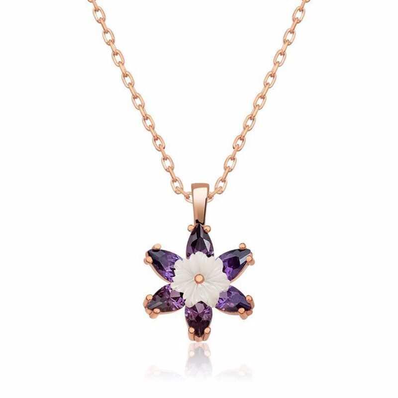 Gümüş Rose Mor Lotus Çiçeği Kolye