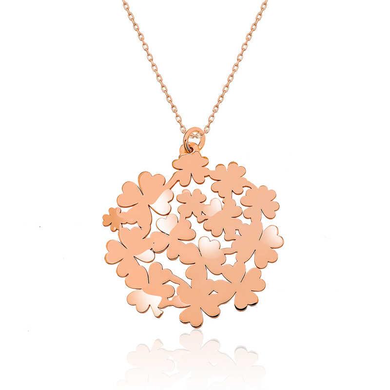 Gümüş Rose Yonca Buketi Bayan Kolye