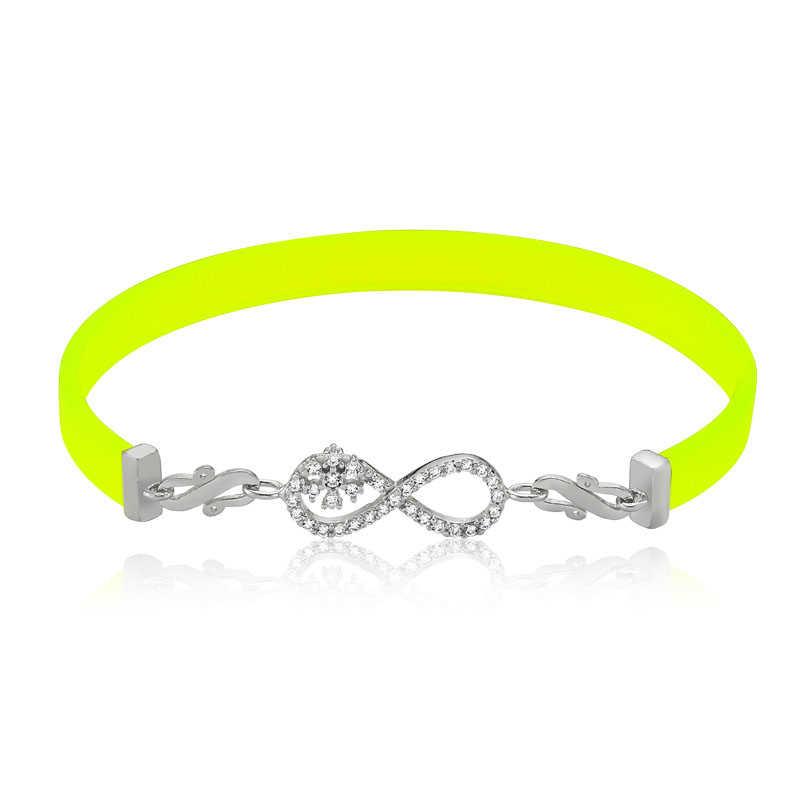Sevgilinize sonsuz aşkı ifade etmenin en güzel, en anlamlı yollarından biri tabi ki sonsuzluk sembolüdür... Sevgilinize hediye edeceğiniz bu anlamlı gümüş bileklik ile ona olan sonsuz aşkınızı ve sevginizi ifade edebilir sonsuza kadar birlikte olacağınız mesajı verebilirsiniz. Sonsuzluk bileklik 925 ayar gümüşten imal edilmiştir. Sarı kordonu kauçuktur. Gümüş üzerine rodyum kaplama yapılmıştır. Rodyum kaplama yapılan ürünler parlaklığını uzun süre muhafaza eder, oksitlenmesi gecikir. Gümüş sarı sonsuzluk bayan bileklik üzerinde bulunan taşlar zirkondur. Tüm bayan bilekliklerde olduğu gibi gümüş sarı sonsuzluk bayan bilekliğin tamamı da el emeği ile üretilmiştir. Gümüş ve değerli taşlar nedeniyle belirtilen ortalama ürün ağırlığında ± %10 sapma olabilmektedir.