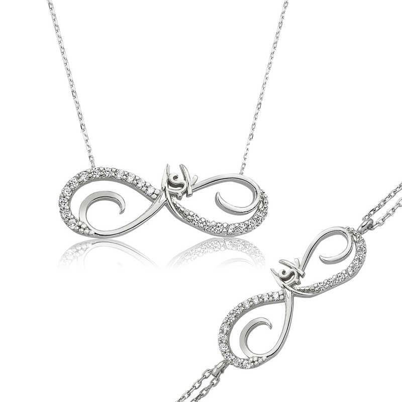 Sevgilinize sonsuz aşkı ifade etmenin en güzel ve en anlamlı yollarından biri sonsuzluk setidir. Şık tasarımıyla bu özel set ile sevdiğinize olan sonsuz aşkınızı ifade edebilir, sonsuza kadar birlikte olacağınız mesajı verebilirsiniz. Gümüş sonsuzluk bayan set ile sevilen ve şıklığından ödün vermeyen bu modeli ; doğum günü hediyesi, sevgililer günü hediyesi veya annelere hediye olarak özel günlerde tercih edebilirsiniz. Gümüş sonsuz aşk bayan set, 925 ayar gümüşten imal edilmiştir. Gümüş üzerine rodyum kaplama yapılmıştır. Rodyum kaplama yapılan gümüş bayan setler parlaklığını uzun süre muhafaza eder, oksitlenmesi gecikir. Üzerinde bulunan taşlar zirkondur. Zincir boyu ortalama 45 cm"dir. Tüm gümüş bayan setlerde olduğu gibi bu gümüş sonsuz aşk bayan set de tamamı el emeği ile üretilmiştir. Gümüş ve değerli taşlar nedeniyle belirtilen ortalama ürün ağırlığında ± %10 sapma olabilmektedir.