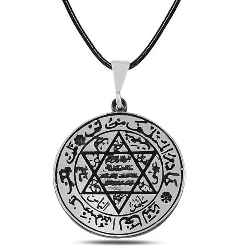 Davud yıldızı veya altı köşeli yıldız olarak da bilinen Süleyman mührünün hikmetlerini saymakla bitiremeyiz. Mührü yanında taşıyan kişiye büyü etki etmez. Kişi her türlü nazardan korunur. Taşıyan kişiye şeytan ve türevlerinin etki etmemesi gibi pek çok şifası vardır. Kolye 925 ayar gümüşten imal edilmiştir. Gümüş üzerine oksit kaplama yapılmıştır. Oksit kaplama yapılan gümüş kolyeler parlaklığını uzun süre muhafaza eder. Tüm gümüş kolyelerde olduğu gibi gümüş Süleyman mührü kolye de el emeği ile üretilmiştir. 55 cm kilitli kauçuk zincir İle birlikte gönderilmektedir. Gümüş ve değerli taşlar nedeniyle belirtilen ortalama ürün ağırlığında ± %10 sapma olabilmektedir.