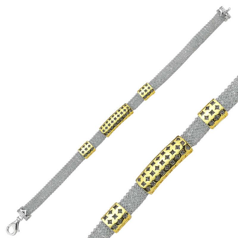 Gümüş file içerisinde ışıl ışıl zirkon taşların yer aldığı gümüş bileklik özel günlerde şıklığınızı tamamlayacak şık bir aksesuardır. Bu aksesuarı; doğum günü hediyesi, sevgililer günü hediyesi veya annelere hediye olarak özel günlerde tercih edebilirsiniz. Bu özel tasarım bileklik 925 ayar gümüşten üretilmiştir. Gümüş taşlı file bayan bileklik üzerinde bulunan taşlar zirkondur. Gümüş üzerine altın kaplama yapılmıştır. Altın kaplama yapılan ürünler parlaklığını uzun süre muhafaza eder, gümüş rengini sarı renge dönüştürür ve oksitlenmeyi geciktirir. Tüm gümüş bilekliklerde olduğu gibi bu gümüş taşlı file bayan bileklik de el emeği ile üretilmiştir. Gümüş ve değerli taşlar nedeniyle ürün ağırlığında ± %10 sapma olabilmektedir.
