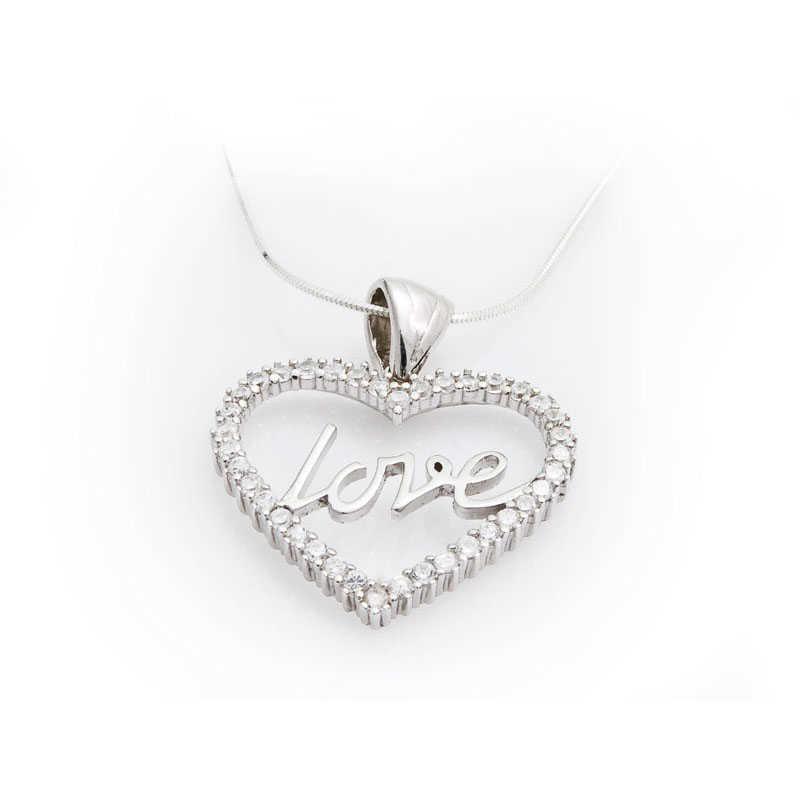 Gümüş Taşlı Love Bayan Kolye