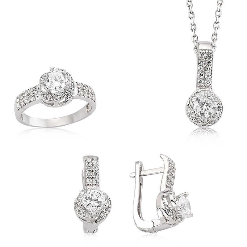 Gümüş Tek Taş Bayan Set