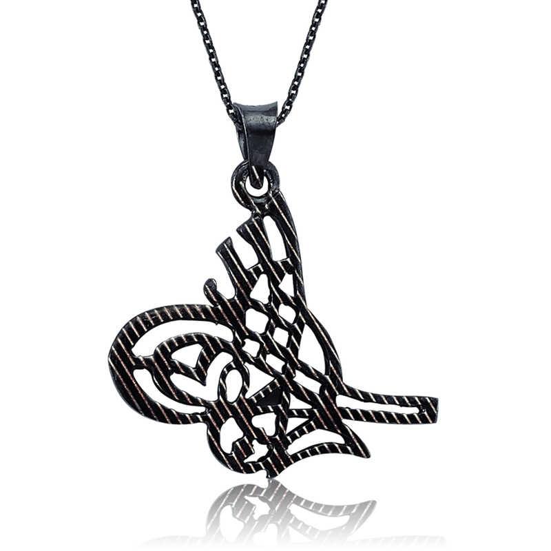 Tuğra, Osmanlı sultanlarının imzası anlamına gelir. Her tuğra; ona ait olan padişahın ismini, varlığını, hükümdarlığını ifade eder. Tuğra sembolü her padişaha göre farklı olmak üzere birçok şekilde günümüze ulaşmıştır. Tuğra Osmanlının her döneminde korunmuş, önemini hiç kaybetmemiştir. Ve zamanla hat sanatımızda da önemli bir yere sahip olup, günümüzde hattatlar tarafından sanatsal olarak yaşatılmaktadır. Bu sanatı yansıtan tuğralı şık gümüş kolyeyi severek kullanabilir doğum günü, sevgililer günü veya anneler gününde de hediye olarak tercih edebilirsiniz. Tuğra bayan kolye modeli 925 ayar gümüşten imal edilmiştir. Gümüş üzerine rodyum kaplama yapılmıştır. Rodyum kaplama yapılan gümüş bayan kolye modelleri parlaklığını uzun süre muhafaza eder, oksitlenmesi gecikir. Zincir boyu ortalama 45 cm\"dir. Tüm gümüş bayan kolye modellerinde olduğu gibi bu gümüş tuğralı bayan kolye modeli de tamamı el emeği ile üretilmiştir. Gümüş nedeniyle belirtilen ortalama ürün ağırlığında ± %10 sapma olabilmektedir.