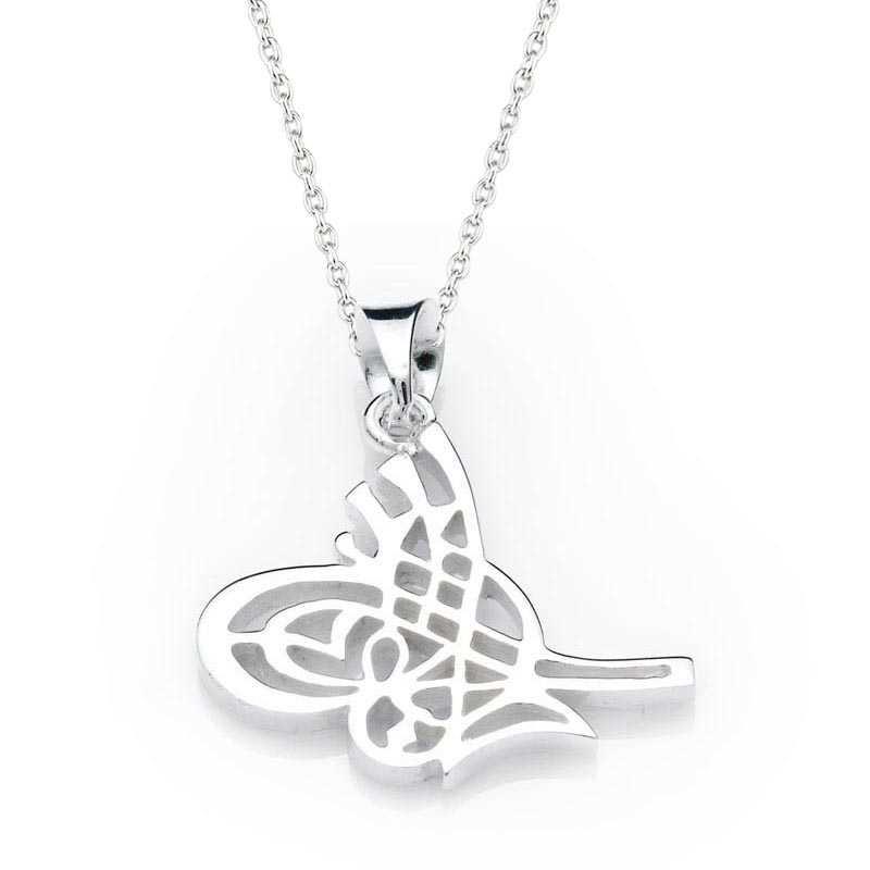 Tuğra, Osmanlı sultanlarının imzası anlamına gelir. Her tuğra; ona ait olan padişahın ismini, varlığını, hükümdarlığını ifade eder. Tuğra sembolü her padişaha göre farklı olmak üzere birçok şekilde günümüze ulaşmıştır. Tuğra Osmanlının her döneminde korunmuş, önemini hiç kaybetmemiştir. Ve zamanla hat sanatımızda da önemli bir yere sahip olup, günümüzde hattatlar tarafından sanatsal olarak yaşatılmaktadır. Bu sanatı yansıtan tuğralı şık gümüş kolyeyi severek kullanabilir doğum günü, sevgililer günü veya anneler gününde de hediye olarak tercih edebilirsiniz. Gümüş nazar bayan kolye, 925 ayar gümüşten imal edilmiştir. Gümüş üzerine rodyum kaplama yapılmıştır. Rodyum kaplama yapılan gümüş bayan kolyeler parlaklığını uzun süre muhafaza eder, oksitlenmesi gecikir. Zincir boyu ortalama 45 cm"dir. Tüm gümüş bayan kolye modellerinde olduğu gibi bu gümüş tuğralı bayan kolye modeli de tamamı el emeği ile üretilmiştir. Gümüş nedeniyle belirtilen ortalama ürün ağırlığında ± %10 sapma olabilmektedir.