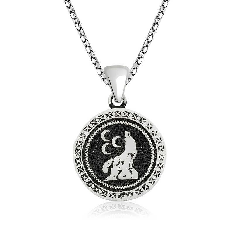 Bozkurt, Türklerin ulusal sembolüdür. Tarih öncesi dönemlerden beri Türklerce kutsal sayılmıştır. Bozkurt"un kutsal sayılmasının ve Türklerin ulusal sembolü olmasının en önemli nedeni, Türklerin bir bozkurtun soyundan geldiklerine inanmalarıdır. Bozkurt, bugün Türk milliyetçiliğinin sembolüdür. Atatürk tarafından da ulusal sembol ilan edilmiş ve birçok yerde kullanılmıştır. Cumhuriyet’in ilk yıllarında Türk Parası üzerine Bozkurt resimleri basılmıştır. Hilal taktiği (veya Turan/Türk taktiği) adı verilen yarım çember ile düşmanı ortaya alıp çemberi kapatma stratejisinin kurtlardan görülerek ilk defa Türkler tarafından uygulanmıştır. Üç hilal bozkurt kolye 925 ayar gümüşten imal edilmiştir. Gümüş üzerine oksit kaplama yapılmıştır. Oksit kaplama yapılan gümüş kolye modelleri parlaklığını uzun süre muhafaza eder ve oksitlenmesi gecikir. Gümüş olan zincir boyu ortalama 55 cm"dir. Bu üç hilal bozkurt kolye de diğer gümüş kolye modellerinde olduğu gibi el emeği ile üretilmiştir. Gümüş ve değerli taşlar nedeniyle belirtilen ürün ağırlığında ± %10 sapma olabilmektedir.